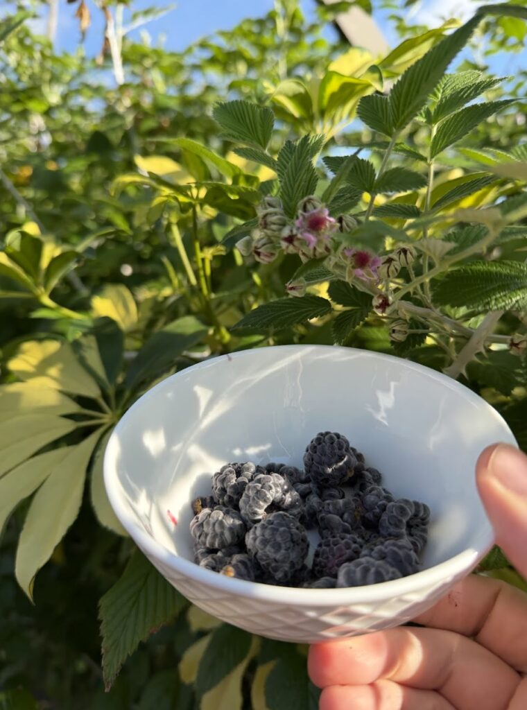Back at home, the garden is starting to produce quite a bit. I am currently harvesting black raspberries from the plants I put in earlier this year.